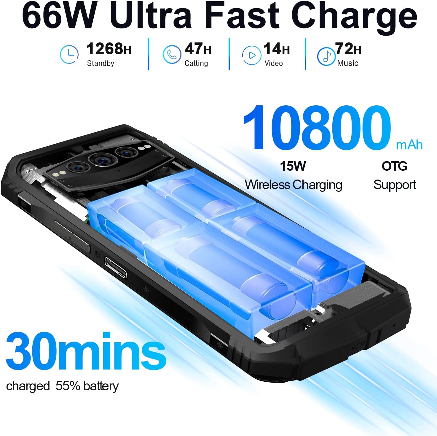 10800mAh battery and in-box 66W fast charger are bundled up for a long lasting experience. 66W fast charging charges faster than your expectation that it only takes under30 minutes to 60%.