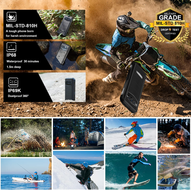 Doogee S100 has a stable structure and solid components, is a fully rugged, durable, and uncompromising rugged phone in any environment. Its tough credentials include MIL-STD-810H and IP68 & IP69K water and dust resistant certified, scratch-resistant screen with Corning®Gorilla® Glass5.No matter where you are, S100 can always give you strong confidence.