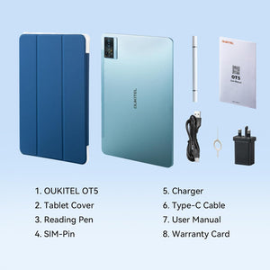 - [Other Features] The OUKITEL OT5 smart tablet boasts four speakers for a stellar audio experience and immersive sound effects. It supports 2.4G/5G WiFi and cutting-edge BT5.2 tech, ensuring rapid and stable wireless connections. Navigate securely during your travels with GPS+GLONASS+BeiDou+Galileo navigation modes. Experience a harmonious blend of audio brilliance and seamless connectivity on the OT5