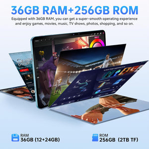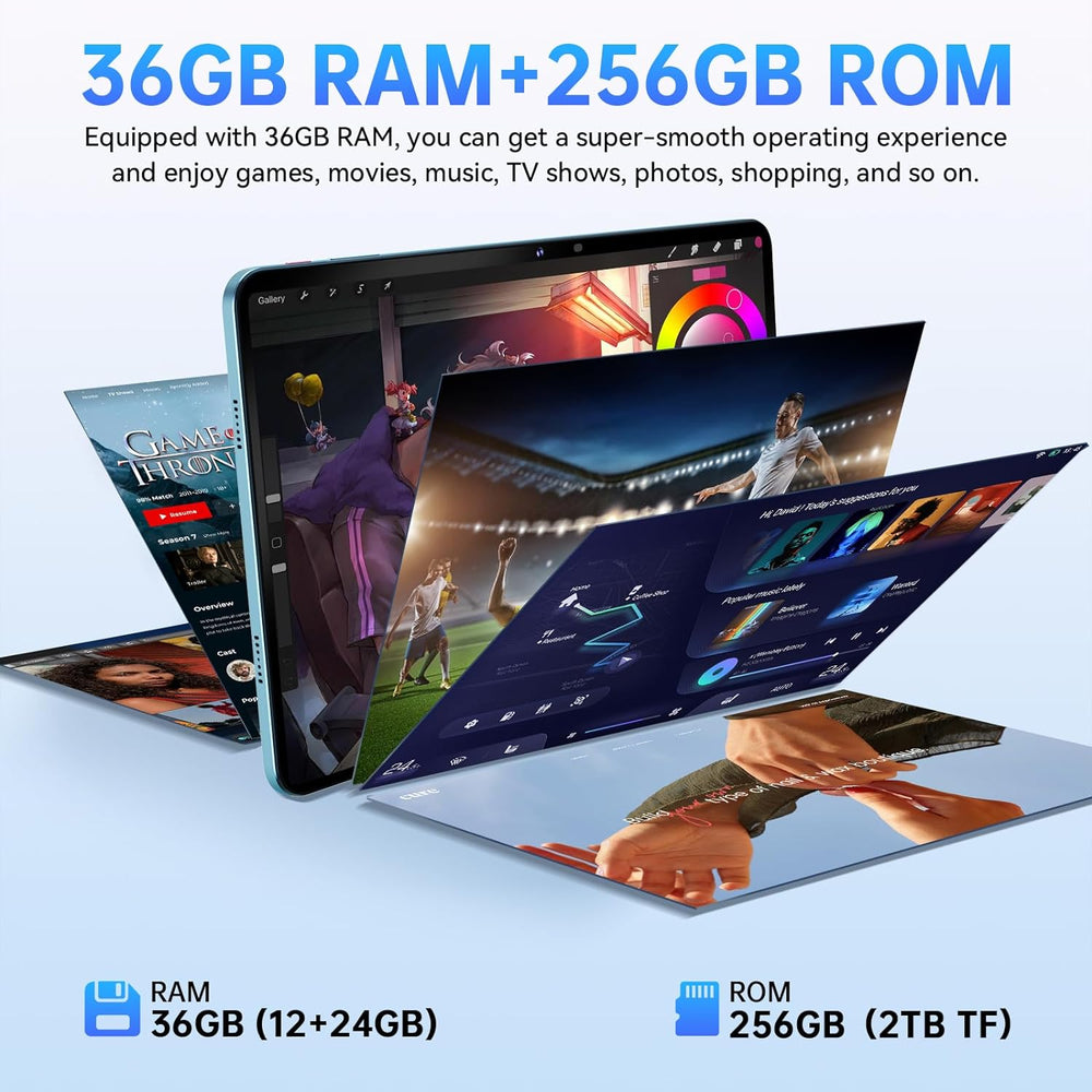 - [36GB RAM + 256GB ROM, Expandable to 2TB] OUKITEL OT5 gaming tablet is a powerhouse, featuring a colossal 36GB of RAM, consisting of 12GB of physical RAM and an additional 24GB of virtual RAM, along with a generous 256GB of storage space.What's more, this tablet boasts expandability of up to 2TB, ensuring that you experience lightning-fast application loading and seamless multitasking. Embrace the freedom to store a plethora of games, videos, e-books, music, and images