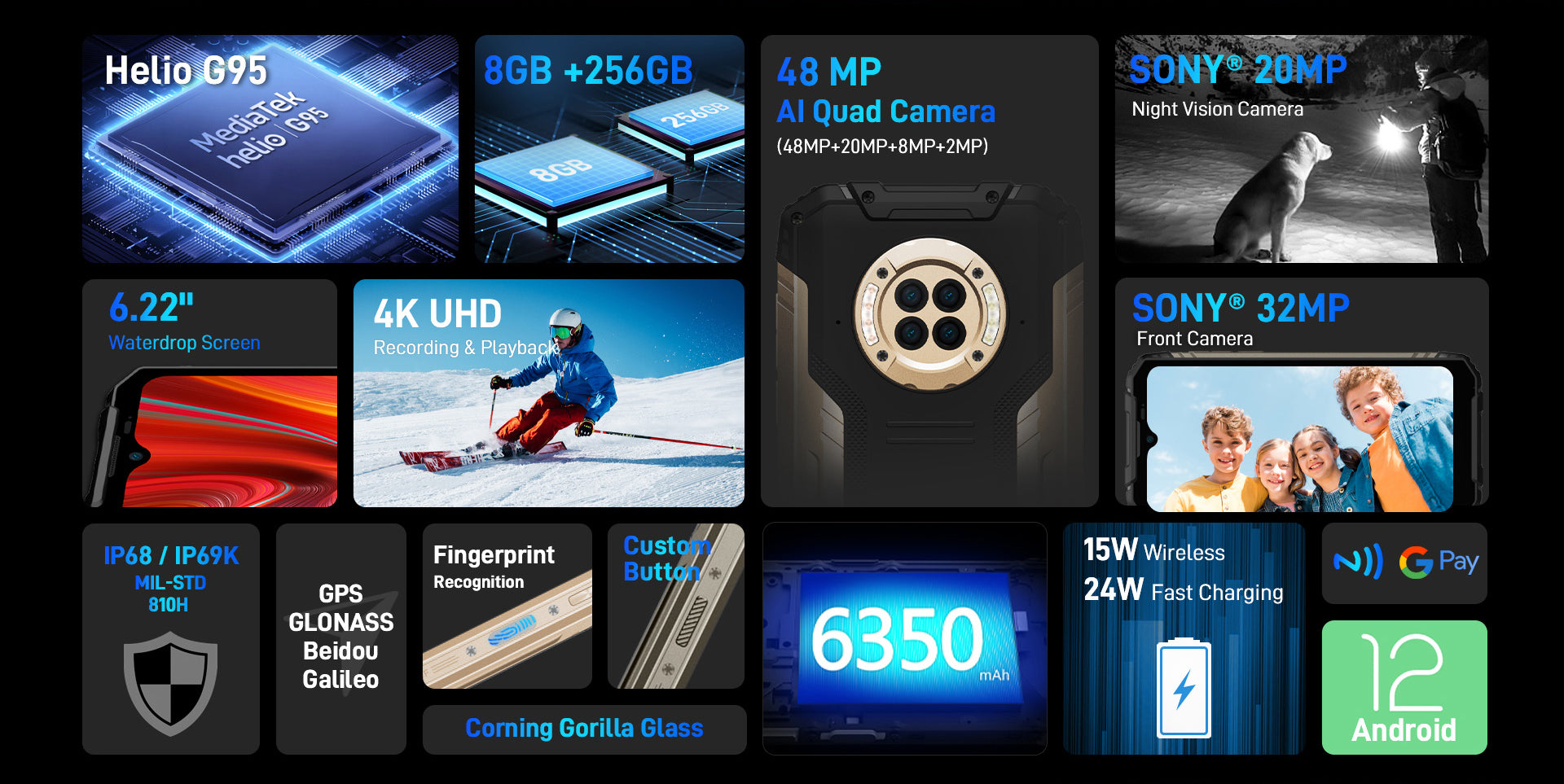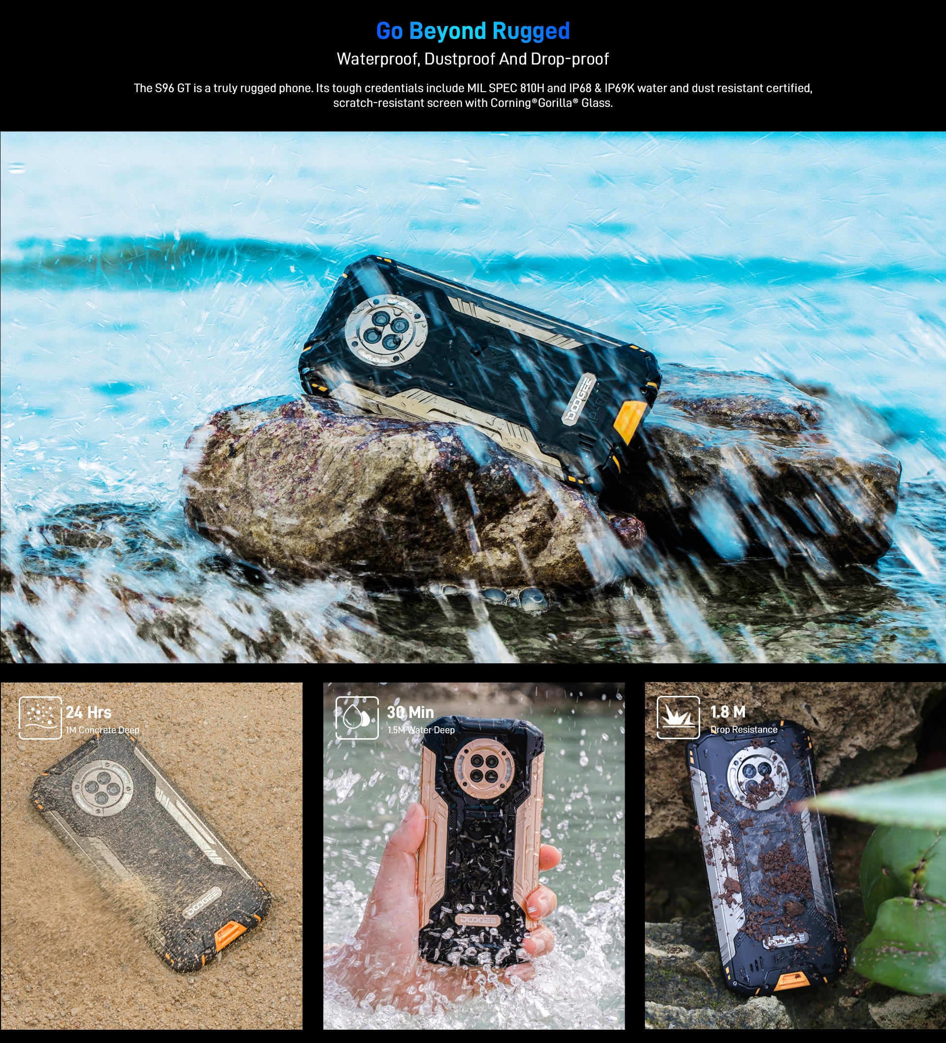 Doogee S96 GT is built to be sturdy and to survive all form of violent drops, rolling and torsion.