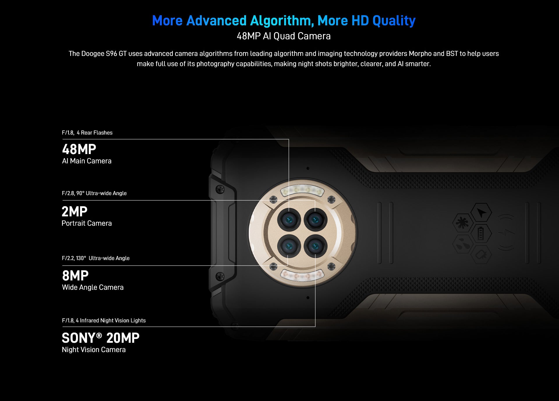 The Doogee S96 GT uses advanced camera algorithms from leading algorithm