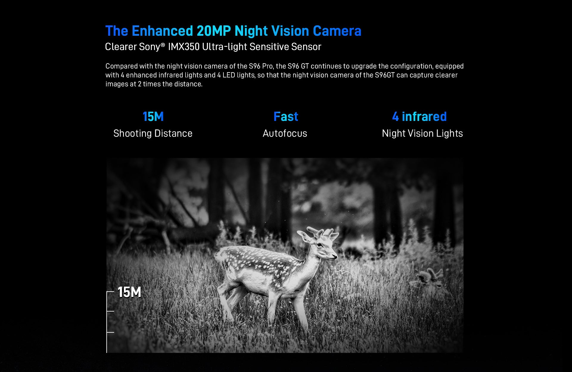 so that the night vision camera of the S96GT can capture clearer images at 2 times the distance.