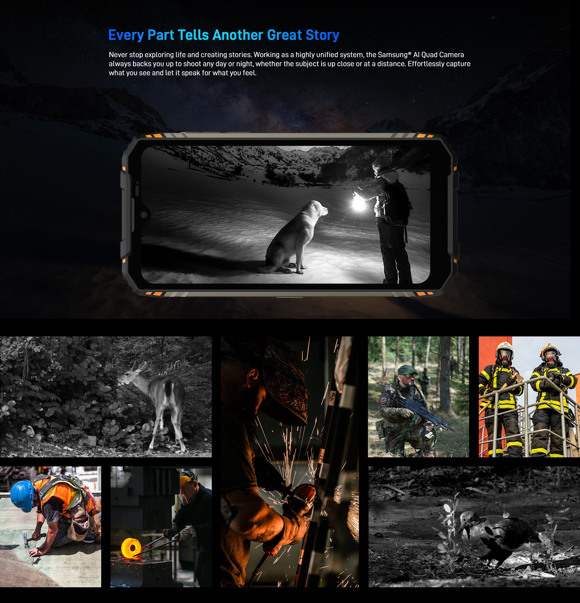 the Samsung® AI Quad Camera always backs you up to shoot any day or night,