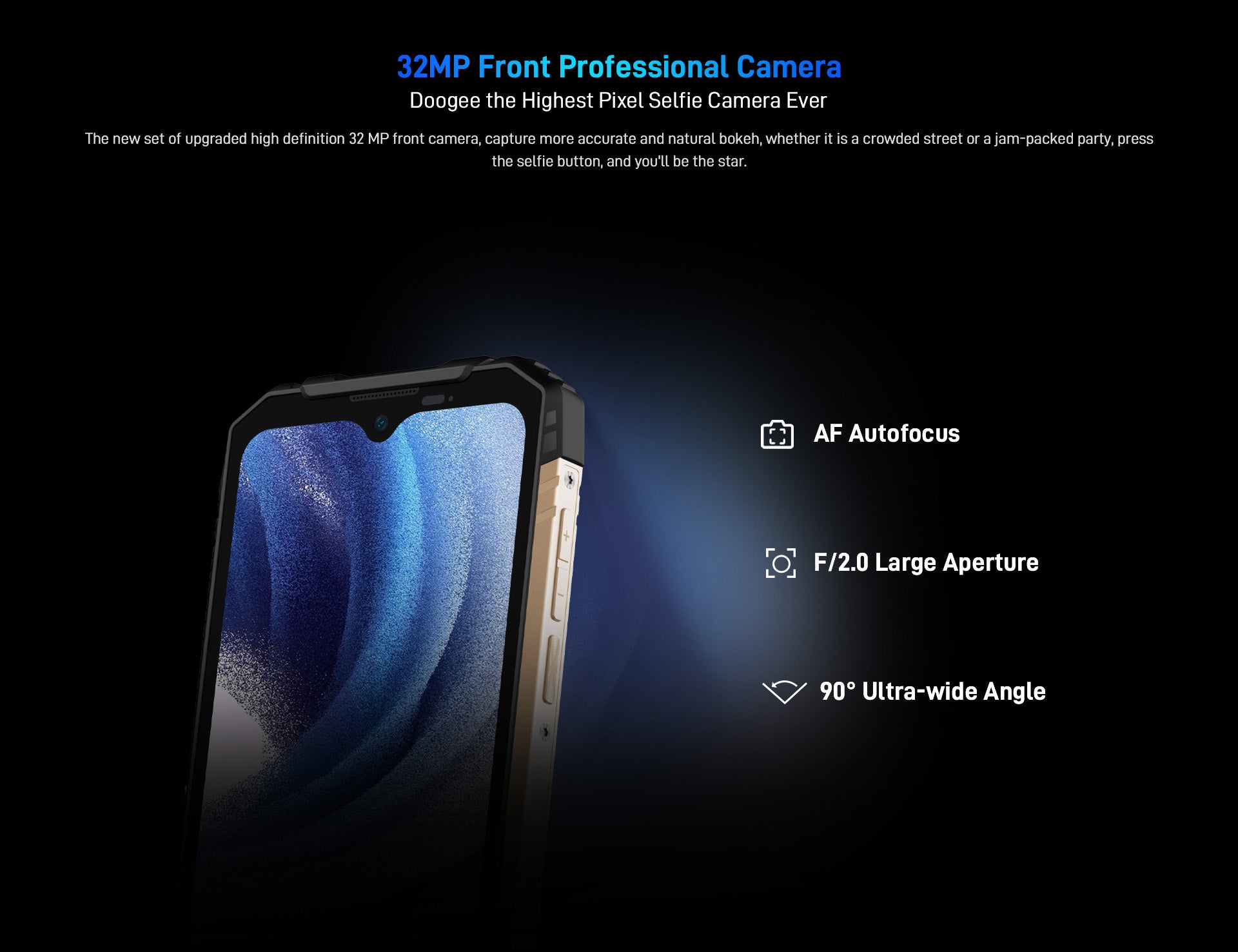 AF Autofocus | F/2.0 Large Aperture | 90° Ultra -wide Angle