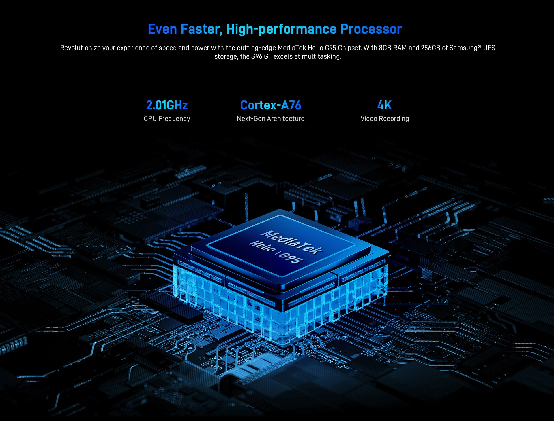 With 8GB RAM and 256GB of Samsung® UFS storage, the S96 GT excels at multitasking.