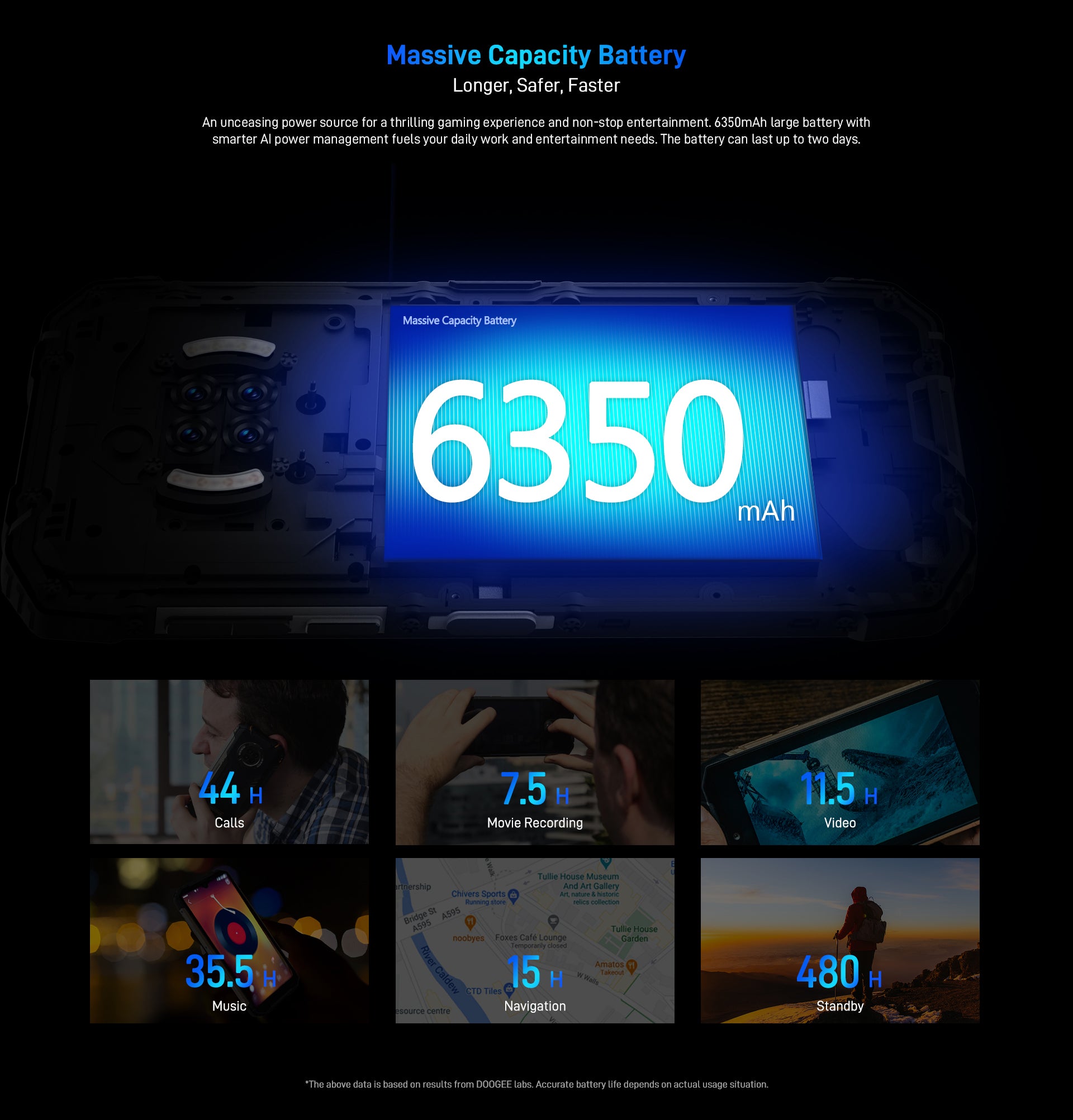 *The above data is based on results from DOOGEE labs. Accurate battery life depends on actual usage situation.