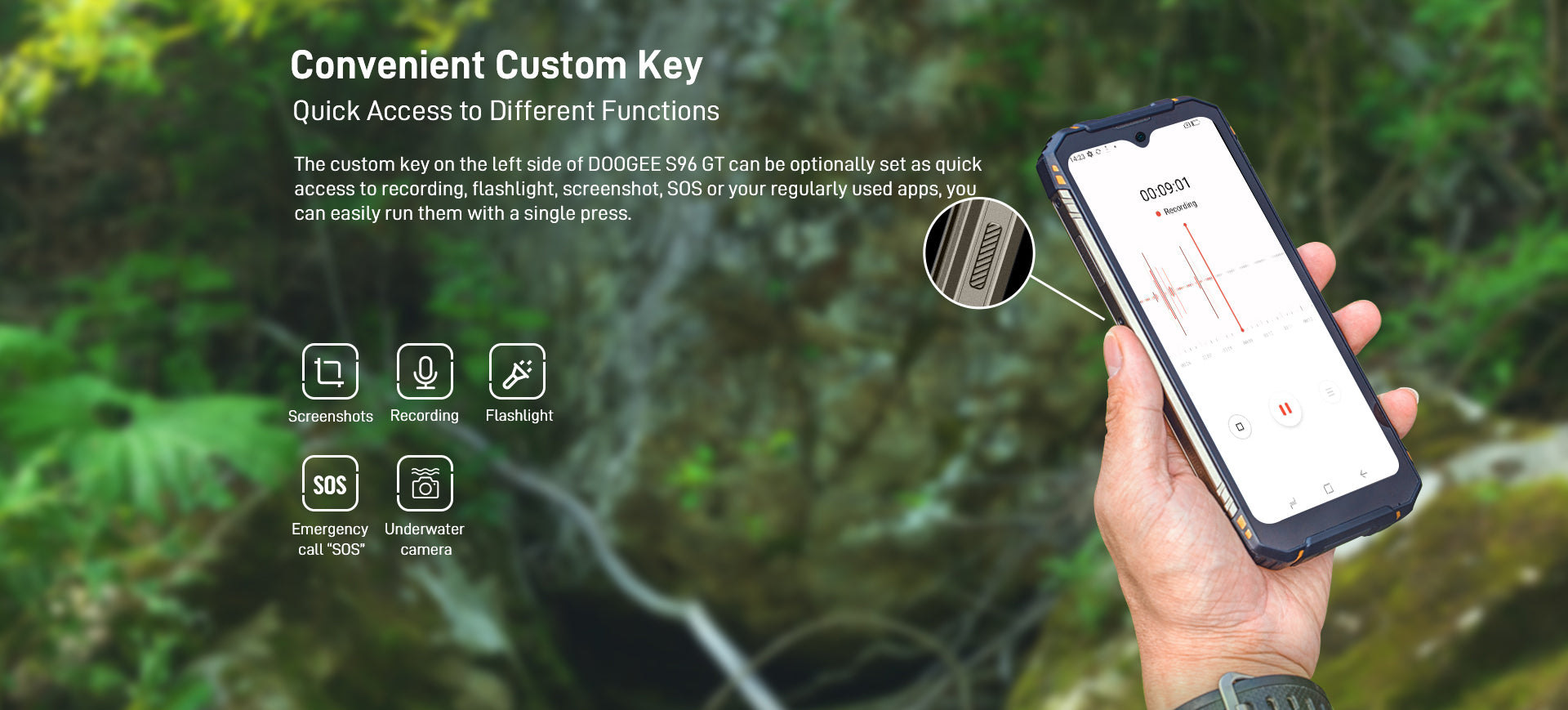 The custom key on the left side of DOOGEE S96 GT can be optionally set