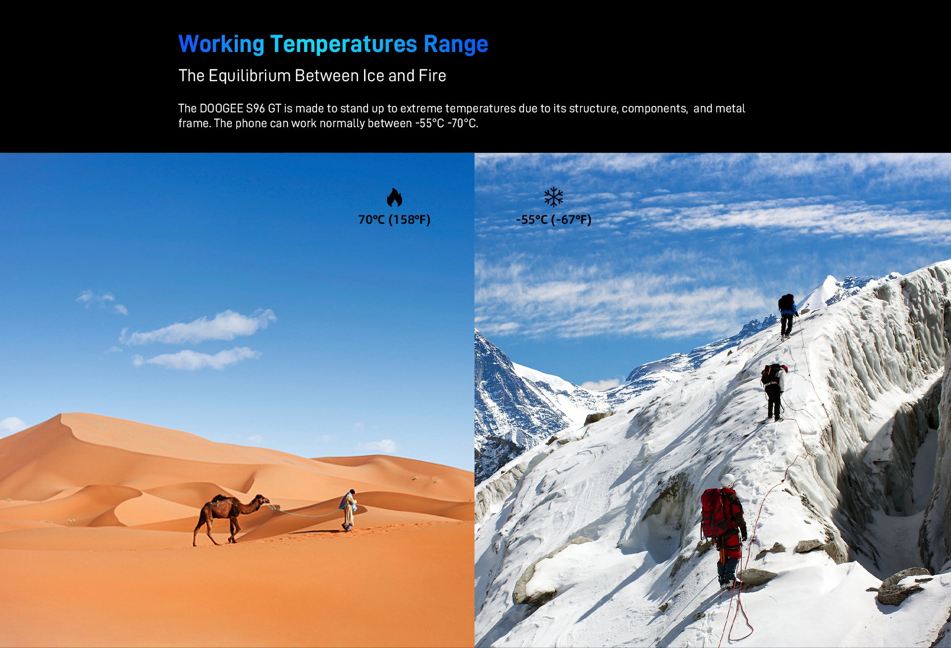 The DOOGEE S96 GT is made to stand up to extreme temperatures due to its structure, components, and metal frame.