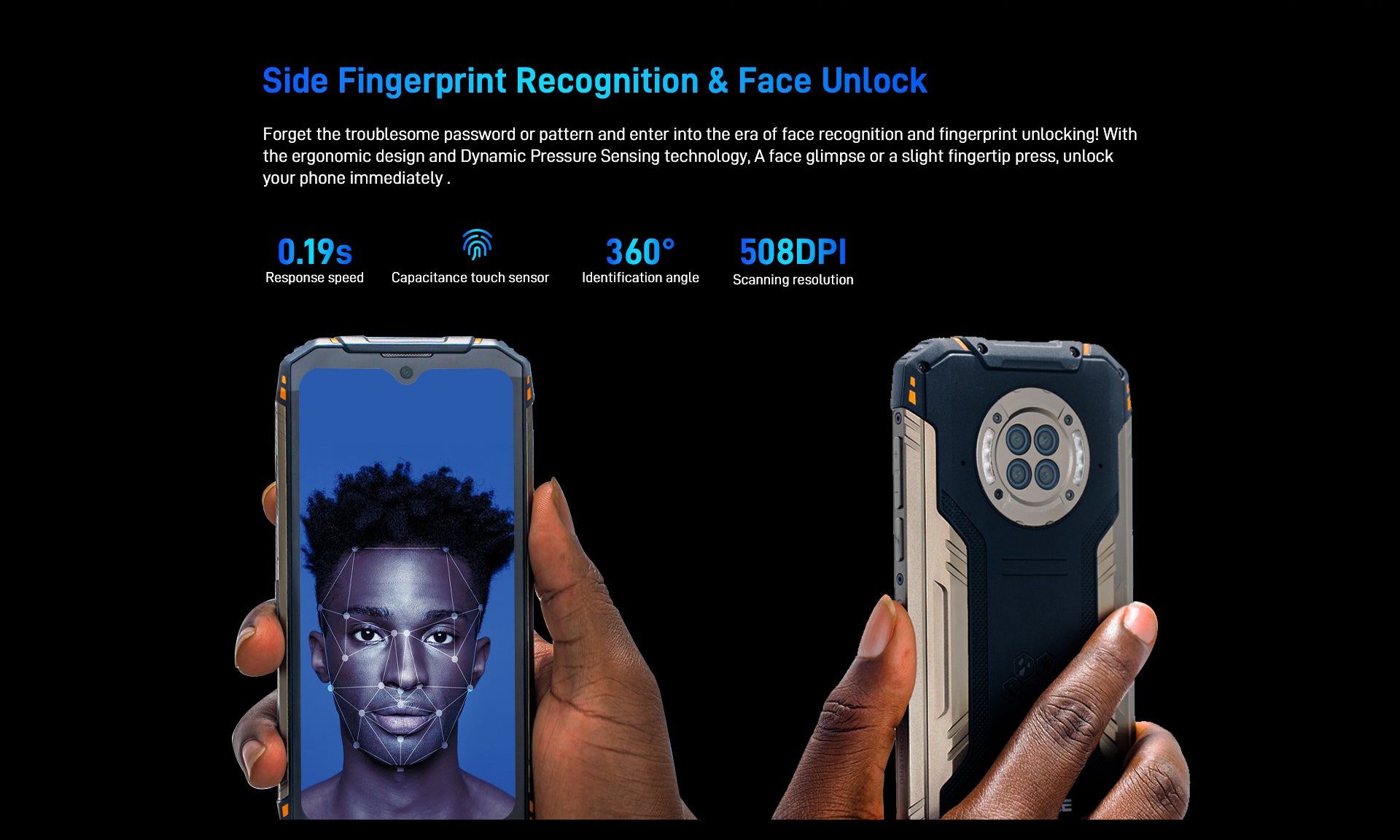 Built-in 360° recognition sensor, DOOGEE S96 GT supports omnidirectional recognition of 10 fingers.