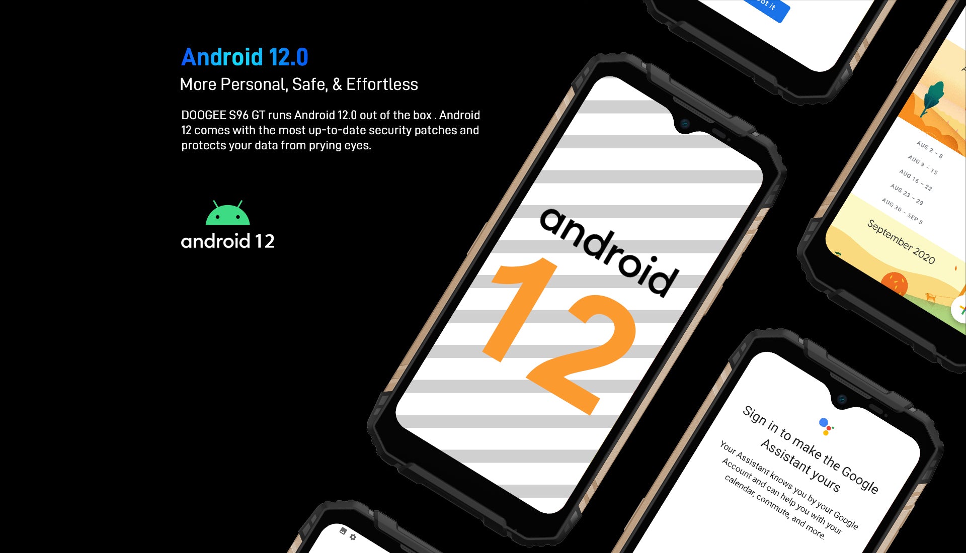 DOOGEE S96 GT runs Android 12.0 out of the box. Android 12 comes