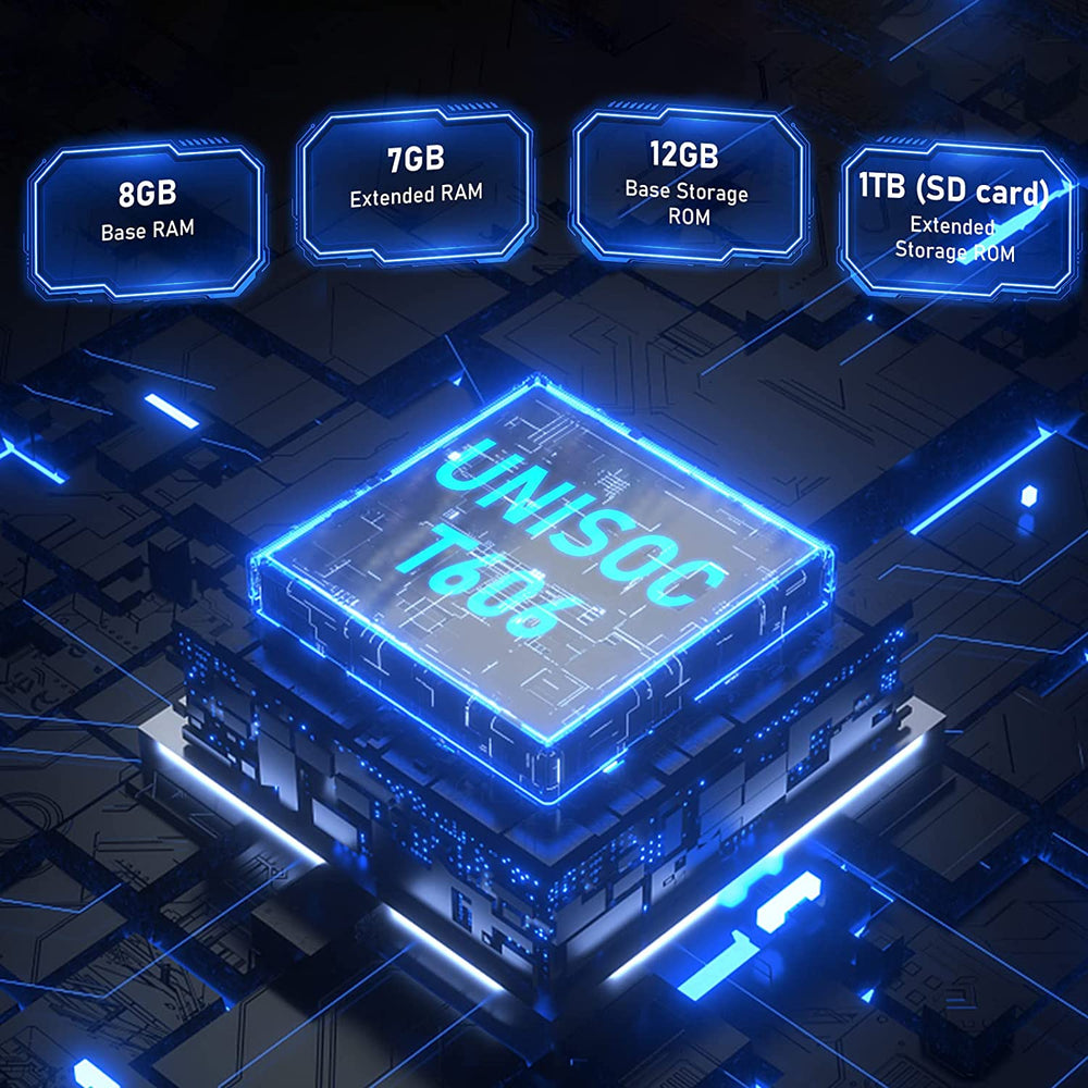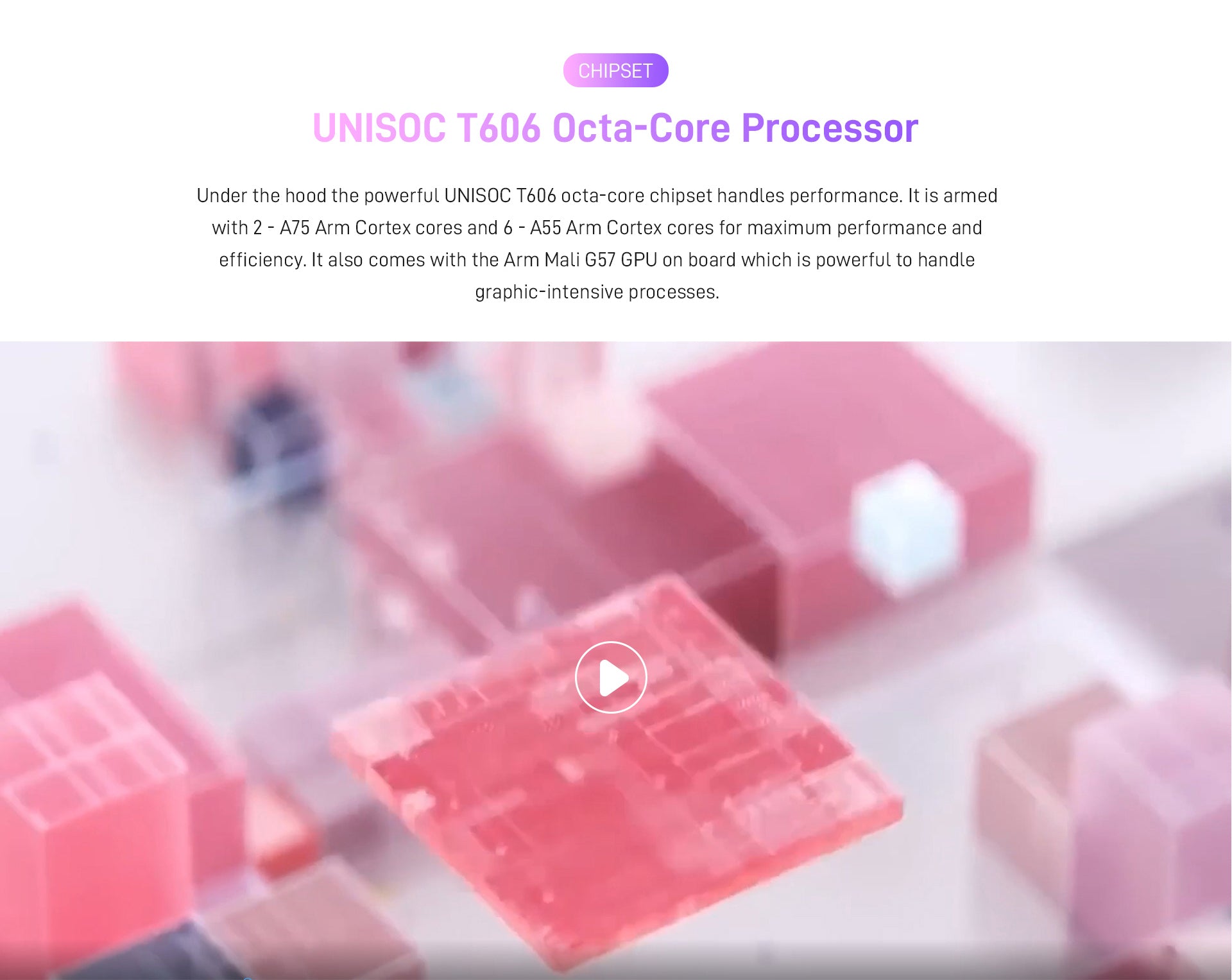 Under the hood the powerful UNISOC T606 octa-core chipset handles performance.