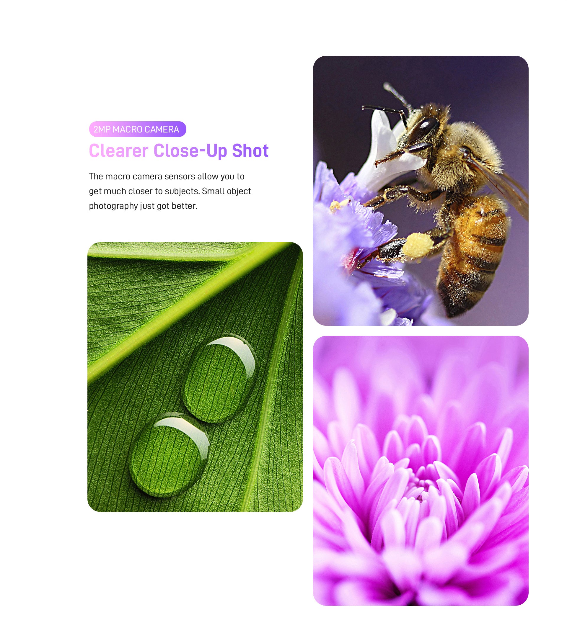 The macro camera sensors allow you to get much closer to subjects. Small object photography just got better.