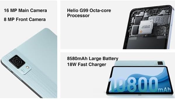 - 【8580mAh Ever-Lasting Battery & 16MP+8MP Camera】The DOOGEE T30 Ultra Tablet comes packed with a powerhouse 8580mAh battery and supports 18W fast charging. Long-lasting battery life meets lightning-fast charging,ensuring that you never run out of juice when you need it the most.Doogee T30 Ultra Tablet featuring a 16MP rear camera capable of capturing clear videos and images, and a 8MP front camera for making video calls.
