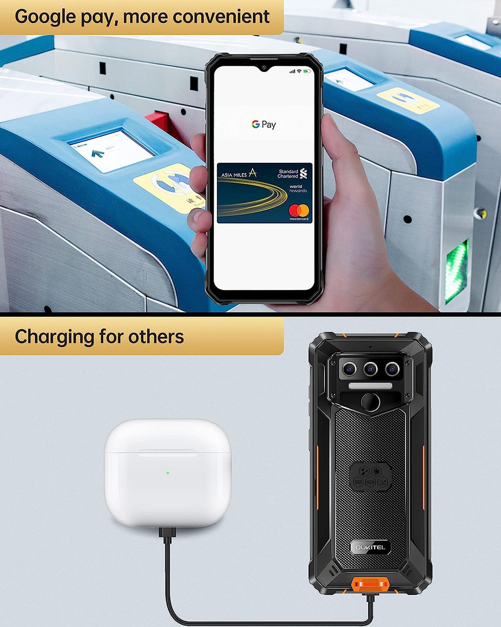 - [Multifunctional Smartphone] OUKITEL WP23 Outdoor smartphone is designed for outdoor activities and extreme conditions. It is equipped with NFC Google-Pay, so you can pay with just one tap. And also has a glove mode, so you can use it even while wearing gloves. WP23 supports OTG, which allow you to easily transfer data between devices. Lastly, it has four large flashlight, so you can use it in the dark. This rugged phone is the perfect choice for anyone who loves the outdoor activity.