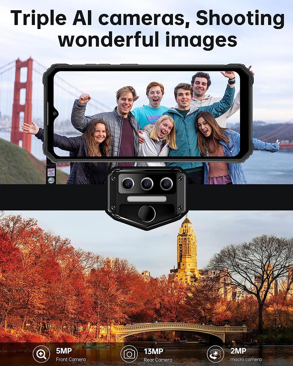 - [Octa-core Processor] The OUKITEL WP23 rugged outdoor phone is equipped with an octa-core processor, which can handle multiple tasks more efficiently than a quad-core processor. This greatly improves the user's work efficiency and experience by allowing multiple applications to run simultaneously. Compared to smartphones with only a quad-core processor, phones with an octa-core processor have higher multitasking capabilities, faster application launch times, better gaming experience, and longer battery life.