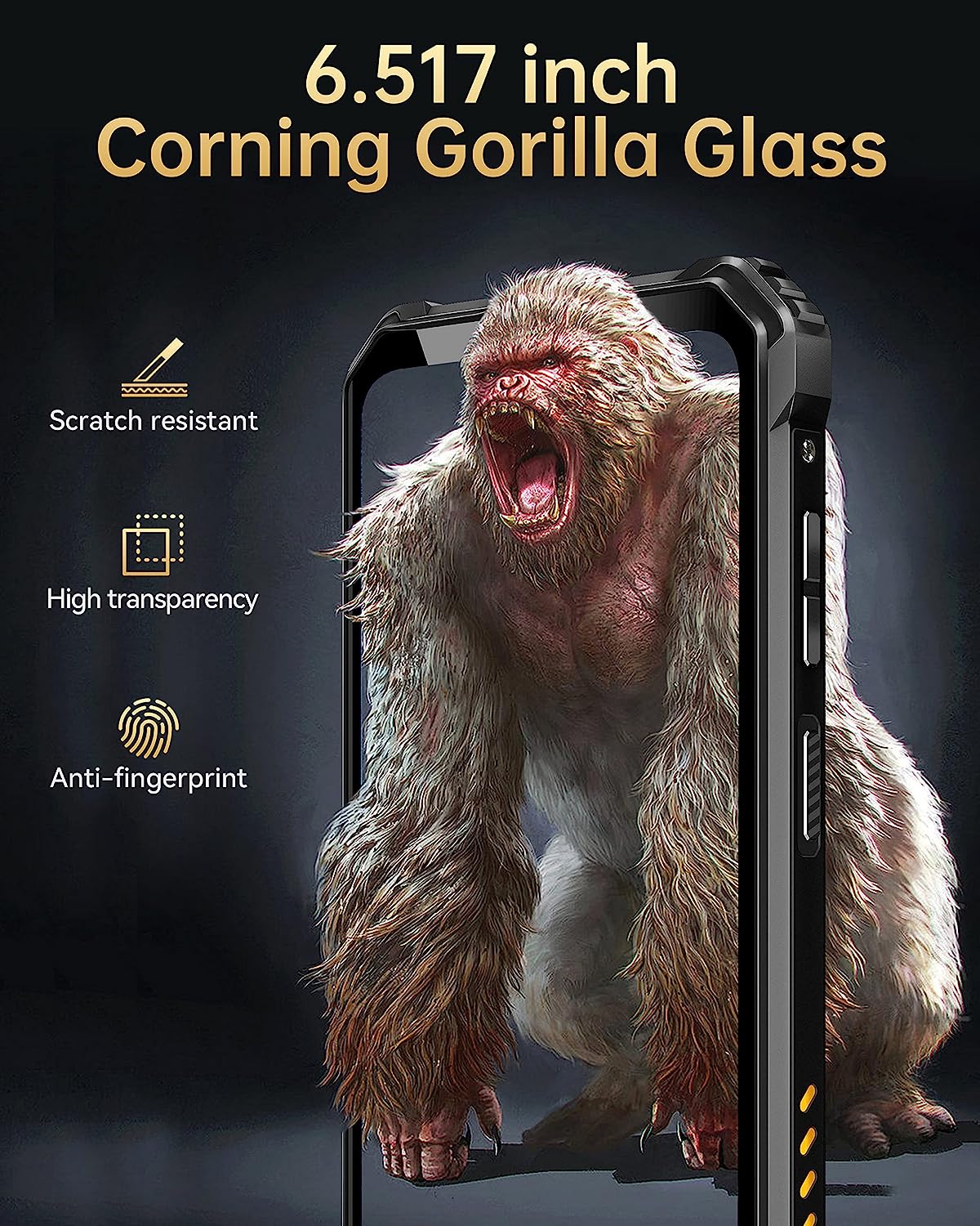 - [6.517 Gorilla Glass Screen] OUKITEL WP23 mobile phone has a 6.517 inch Corning Gorilla Glass. The glass is so solid that the screen will not be damaged even if it is scratched with a sharp knife. It has a stylish design and slim shape, which is very comfortable to hold and use. It also has anti-impact, which means that it will not break even if it falls from height. Vibrant colors and clear details provide an excellent viewing experience with a 6.517-inch screen.