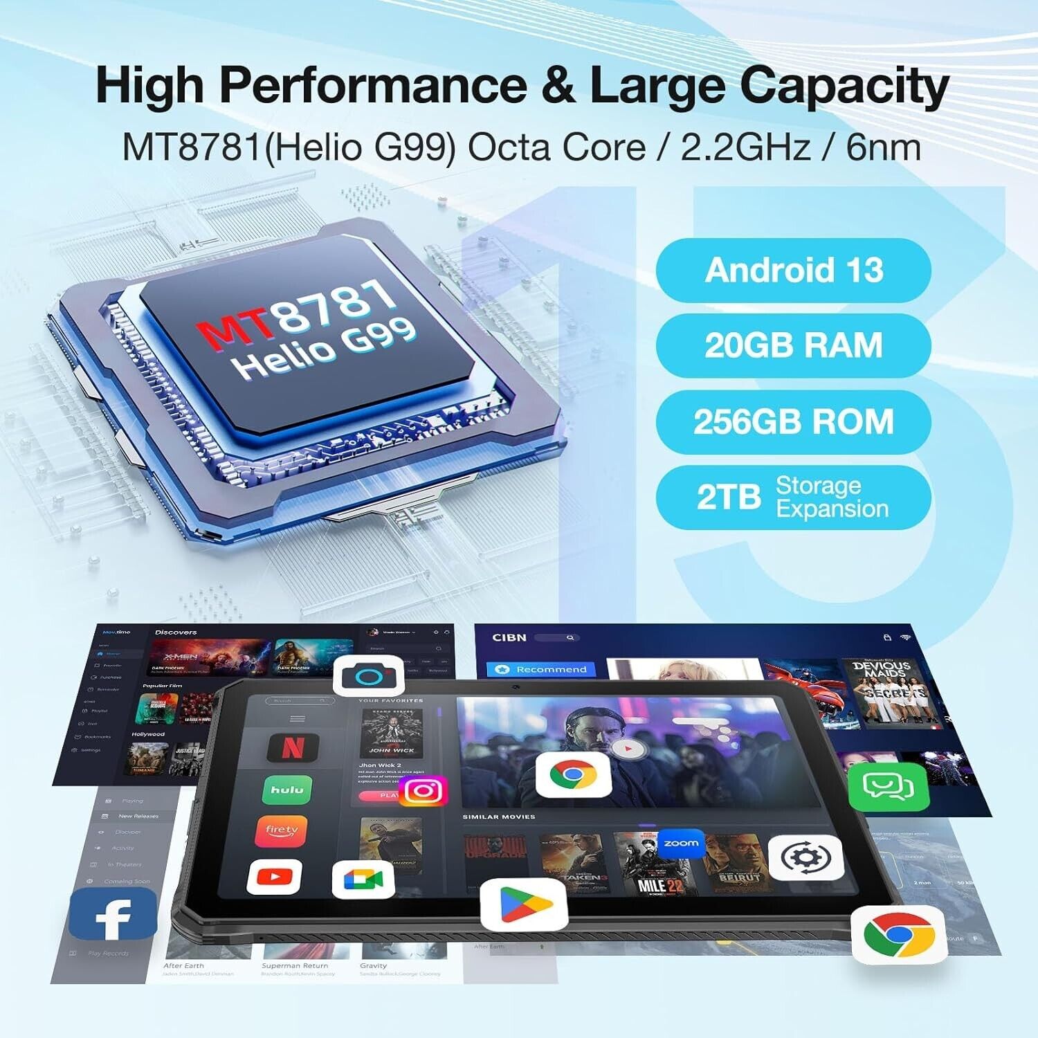 - Helio G99 Octa Core Processor/Up to 20GB RAM+ 256GB ROM