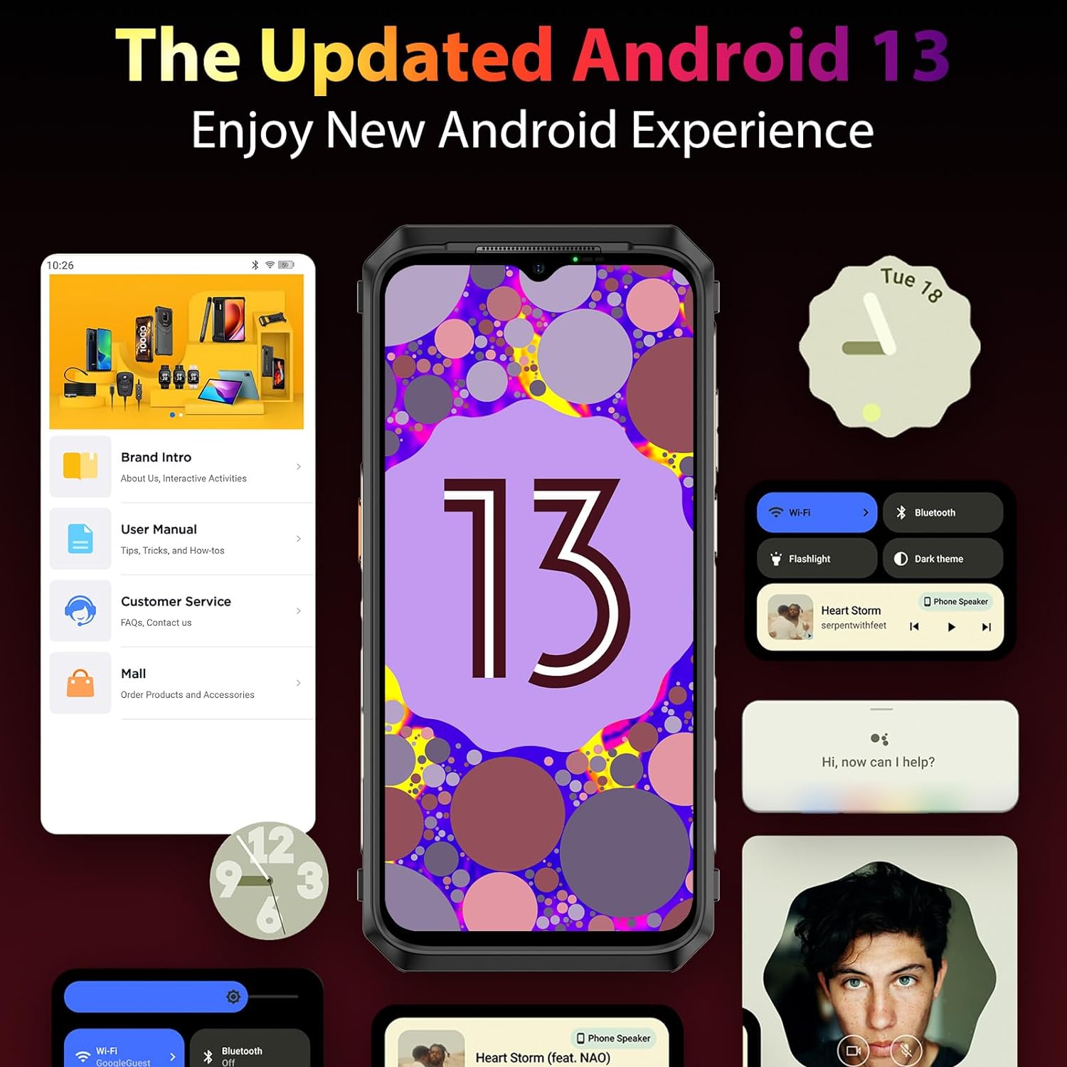- 【108MP Main Camera + 32MP Front Camera】The new generation 108MP camera empowered by Samsung’s ISOCELL HM2. The massive 1/1.52” sensor, armed with ISOCELL Plus and Smart-ISO technology, 5MP Microlens Camera, 60x Super Magnification and 32MP HD Front Camera. This rugged phone can take incredibly clear photos, day or night.