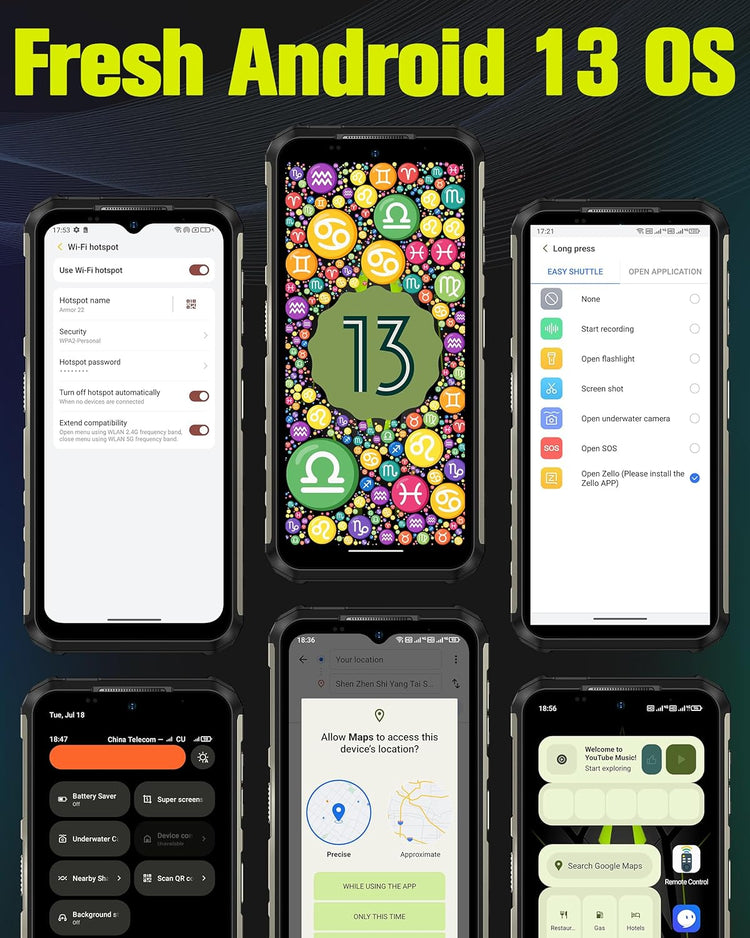 - 【Android 13 OS & WiFi Hotspot】Armor 22 runs Android 13 OS, which support the User Interface featured with customizable color, theme, language and even themed app icons expresses individual identity, also support WiFi Hotspot. Offering More safer and private zone with photo picker and more control for notification permissions and data.