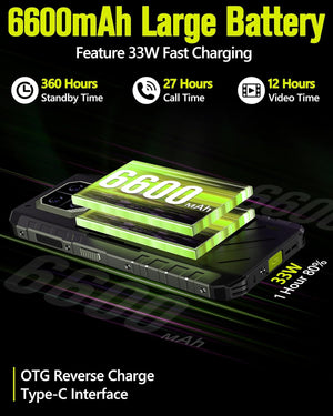 - 【6600mAh Battery & 33W Fast Charging】Armor 22 packs a 6600mAh large capacity battery, 360 hours standby time, 27 hours call time and 12 hours video playback. Its 33W fast charging saves the time and enables /your device always ready to use. The reverse charging supported feature helps you solve the urgent need to recover your watches, smartphone or earphones.