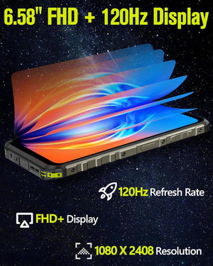 - 【6.58” FHD+ 120Hz Display】Armor 22 boasts an ultra large 6.58 inches FHD+display, 1080× 2408 Resolution, 401 PPI. 120Hz high refresh rate results in smoother motion on the screen, making videos and games appears more fluid and lifelike. It brings broad visuals and delivering sharper and more detailed images.